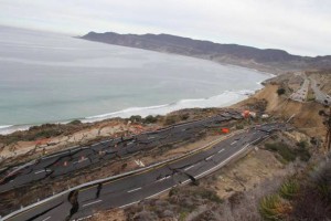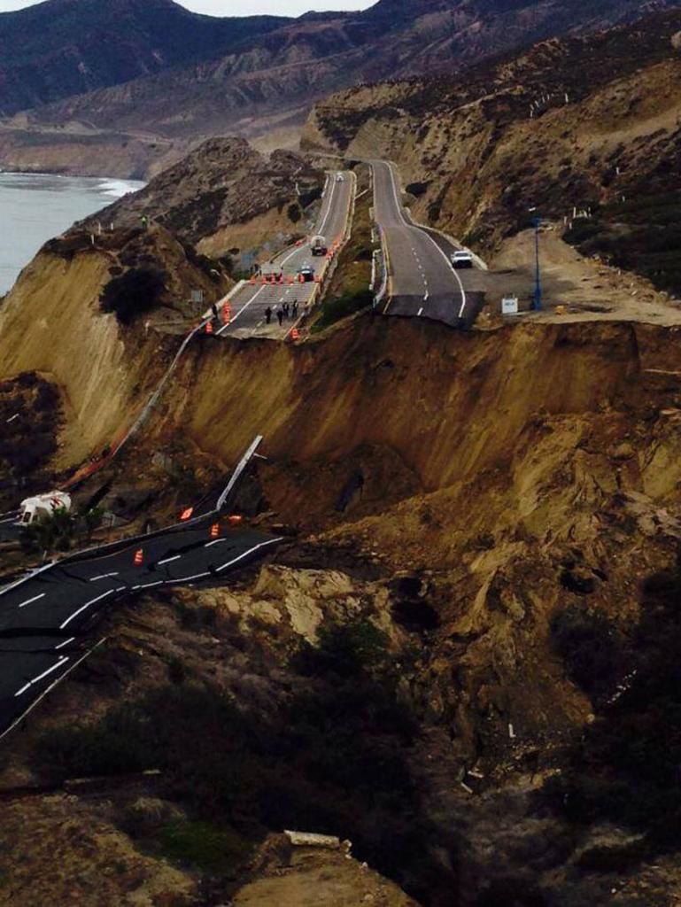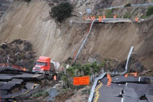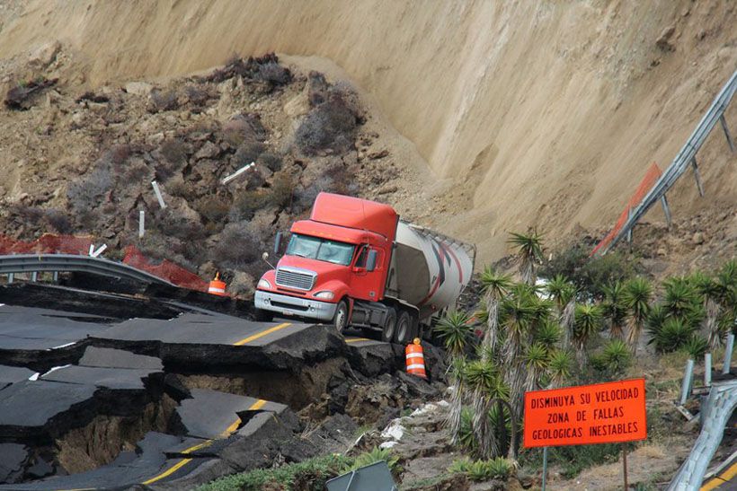 Серия не очень сильных землетрясений и дождь стали причинами того, что почти 300-метровый участок платной автострады возле мексиканского города Энсенада провалился.