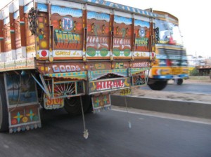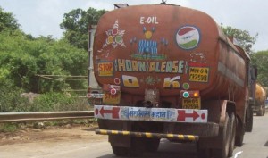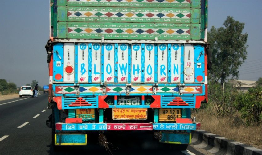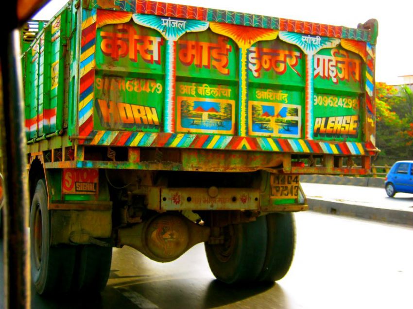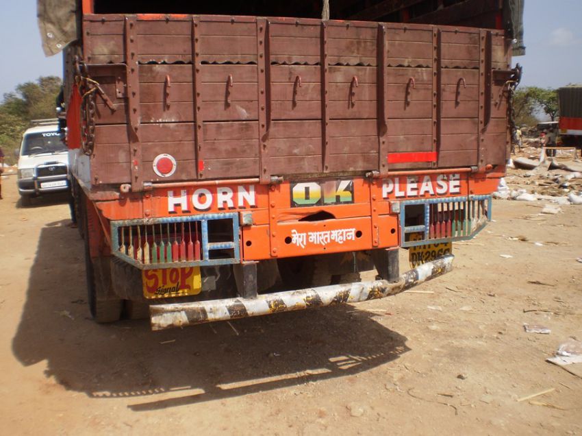 Какая из этих теорий правда уже не скажет никто, но тем не менее эта фраза стала народной формой искусства Индии — водители упражняются и соревнуются друг перед другом в красоте написания этой фразы.