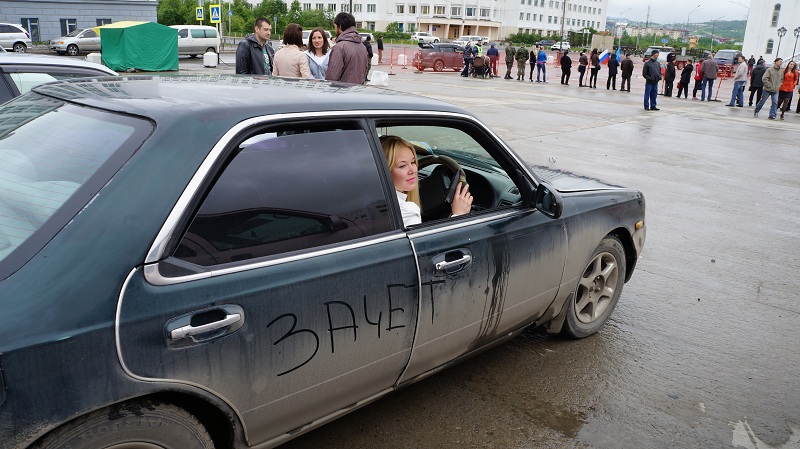 В прошлом этапе конкурса девушки показывали свое мастерство за рулем автомобиля. Этот этап конкурса прошел 5го числа на Соборной площади. Девушки должны были преодолеть змейку, припарковаться в гараже, снять со стойки кольцо, а потом одеть его на другую стойку и остановиться на стоп-линии.