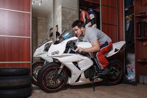 Мотосезон в европейской части России длится примерно полгода и заканчивается в первые выходные октября. Любители «покатушек» на всю зиму погружаются в ностальгию, которую в среде мотоциклистов называют мототоксикозом. Проявляется он по-разному, но о нем поют песни, пишут стихи. Тоскующий фанат может зимой одеться в мотоэкипировку и в таком виде отправиться на прогулку по городу. Чтобы не расставаться со своими железными друзьями, их ставят в дом, что часто вызывает трудности: как отмечал герой одного советского фильма, у нас не очень большие квартиры. «Лента.ру» публикует фотоисторию болезни тех, кто страдает мототоксикозом.