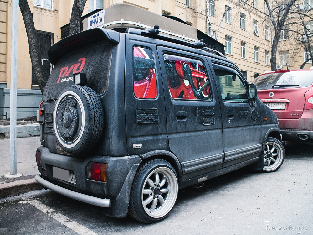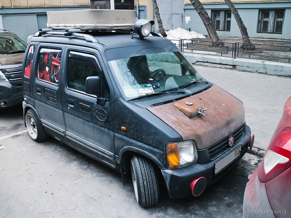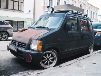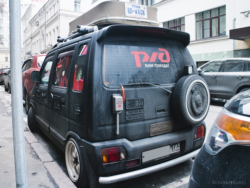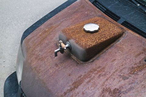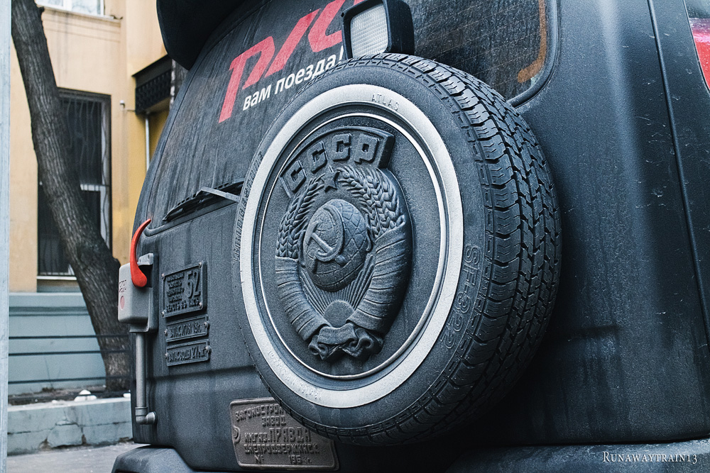 Если я хоть что-нибудь в чём-нибудь понимаю, то либо владелец этого авто скучает по несостоявшейся эпохе стимпанка, либо это рекламный автомобиль (или шоу-стопер, как вам больше нравится). И рекламирует он установку пневматических тепловозных гудков на автомобили. Перекрашенная в матово-чёрный, местами ржавая, облепленная чугунными табличками таратайка привлекает внимание. Но без блеска латунных деталей нового поезда, лоска горячих боков паровозной топки, да ещё и с невнятно оформленным салоном автомобиль производит впечатление латаной-перелатаной цыганской повозки, но никак не обладателя яркого тепловозного голоса. Впрочем, возможно, что гудок — единственное, чем может выделиться этот автомобиль в потоке себе подобных. Не на угле же он гоняет, в самом деле?