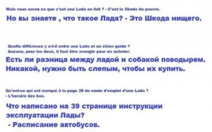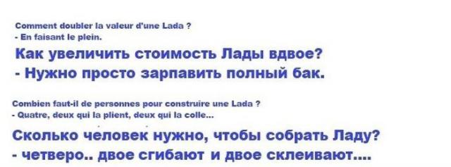 1 Шутки про Ладу из Франции 11 февраля автобот С инета картинки, отечественные авто 3 комментария Даже как-то обидно немного( Картинки под катом. Понравился пост? Поделись с друзьями!